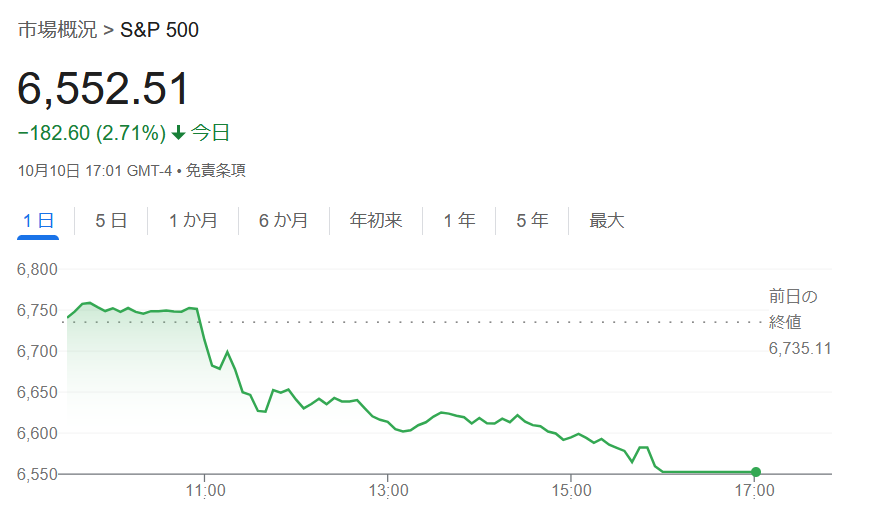 発言直後の取引では、米国株式市場が大きく値を下げ、ダウが約878ポイント(約1.9%)、S&P500が約2.7%、ナスダックが約3.6%下落しました。