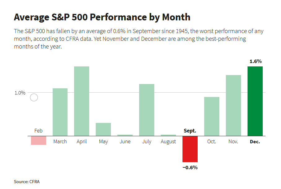 足元9月の半分が終わろうとしていますが、9月は歴史的に「夏枯れ」と言ってあまり株価にとって良い時期でないというアノマリーが存在します。