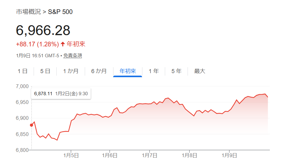 2026年も株式市場が始まりました。まだほんの数日なので一喜一憂するつもりはないのですが、現在で1%超上昇しています。