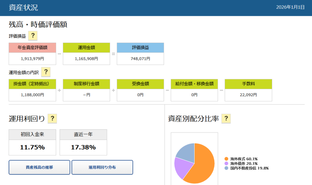 2025年もお疲れさまでした。毎月12,000円積立てているidecoと、毎月30,000円積立ているのTHEOの運用実績を確認していきたいと思います。